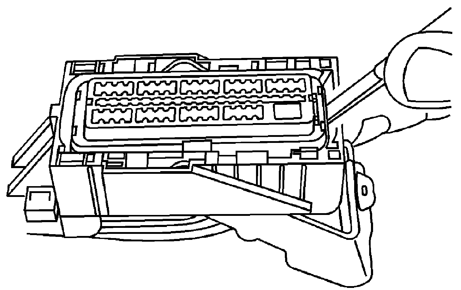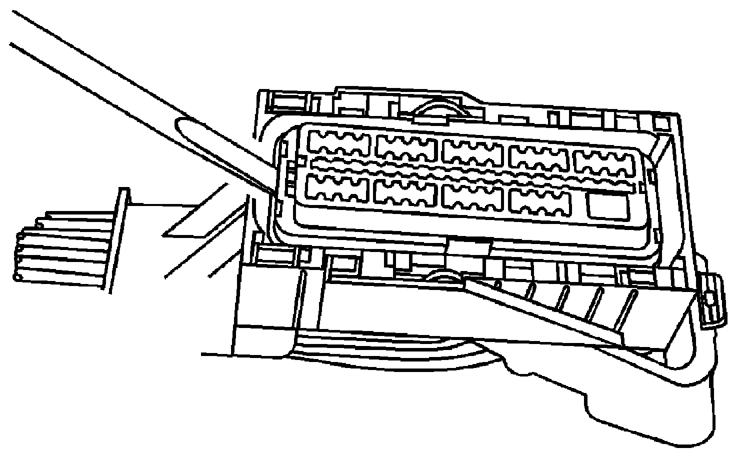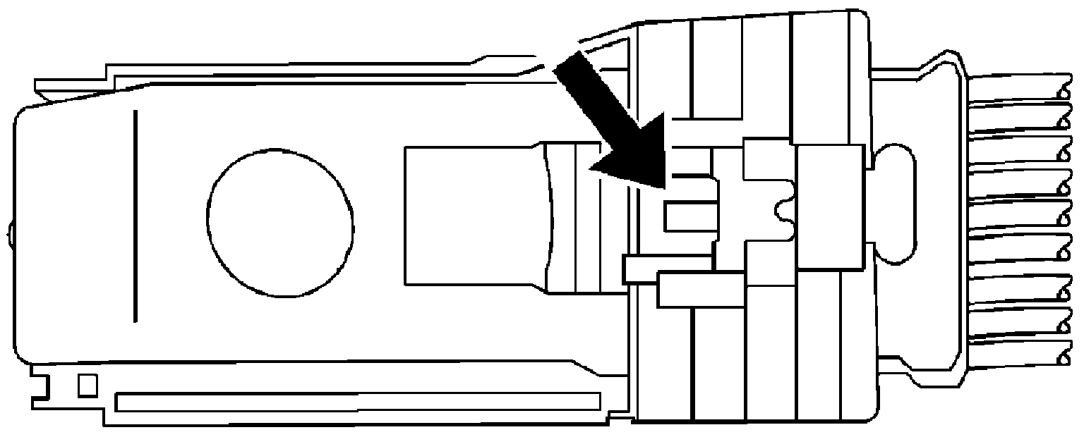 1. Locate the connector position assurance (CPA) on the top of the wire dress cover. Slide the CPA forward.