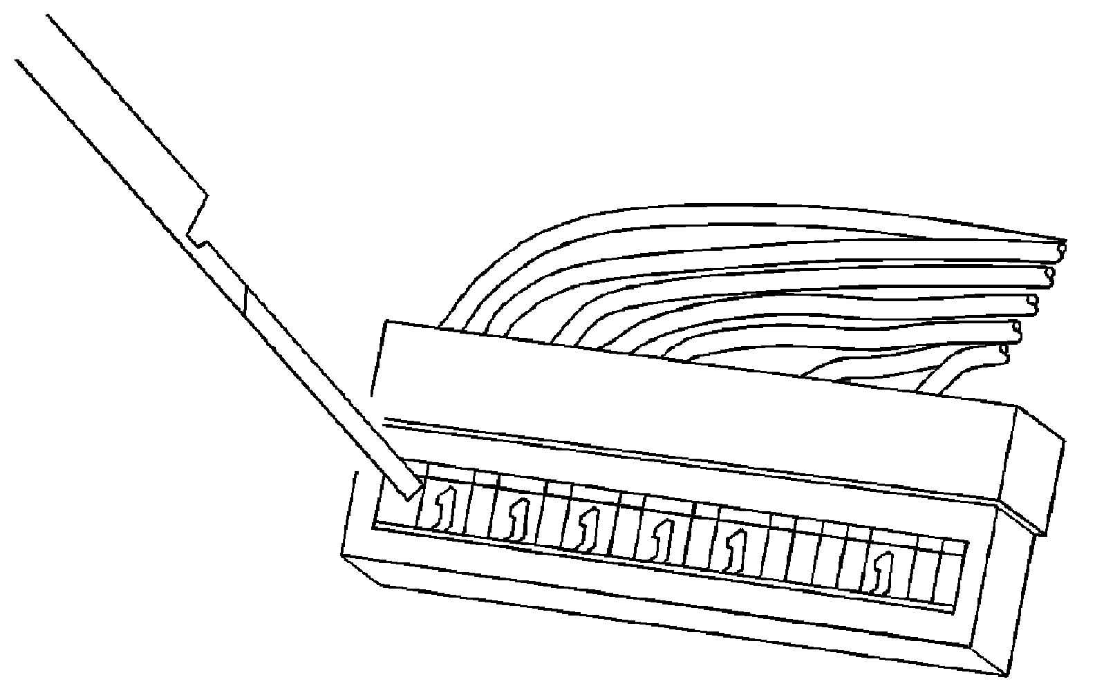 6. Use the J 38125-12A (GM P/N 12094429) tool to release the terminals by pressing on the tang. See the release tool cross reference in the Reference Guide of the J-38125 to ensure that the correct release tool is used.