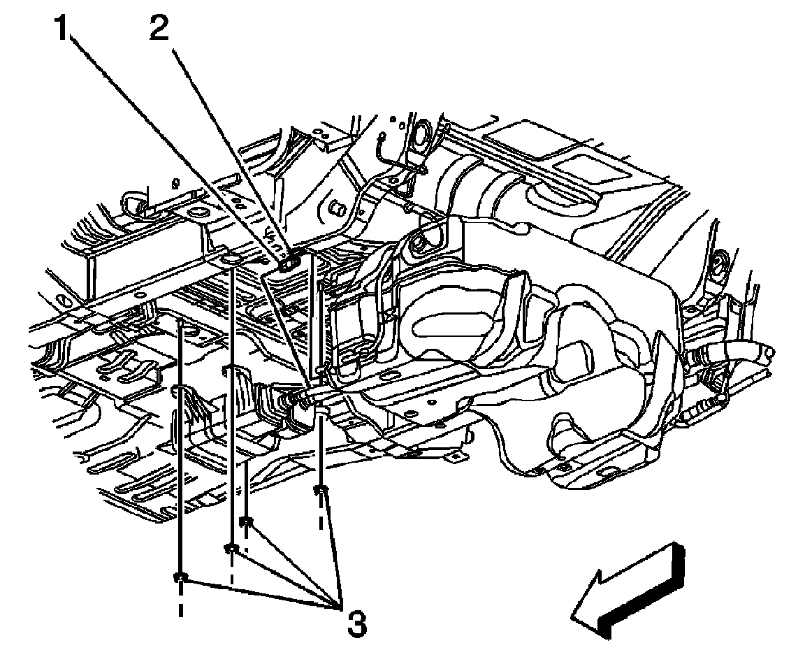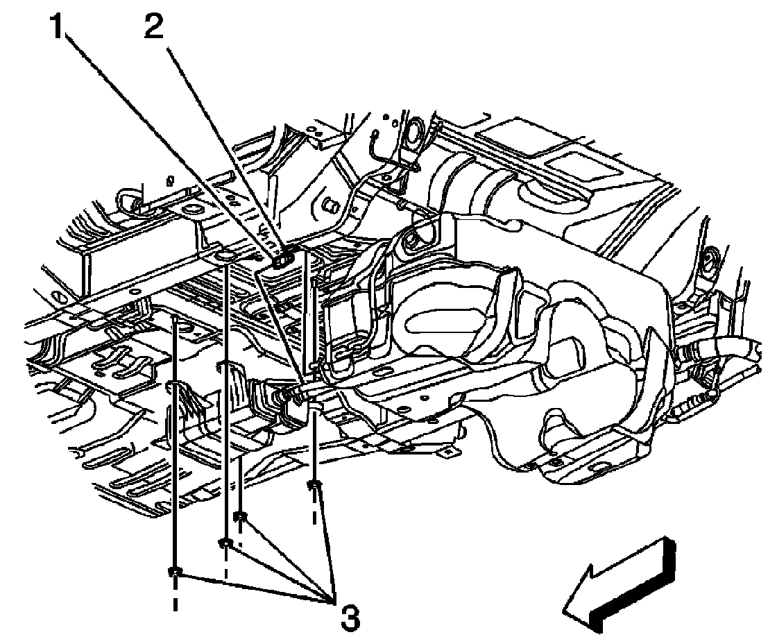 5. Remove the EVAP canister-to-underbody nuts (3).