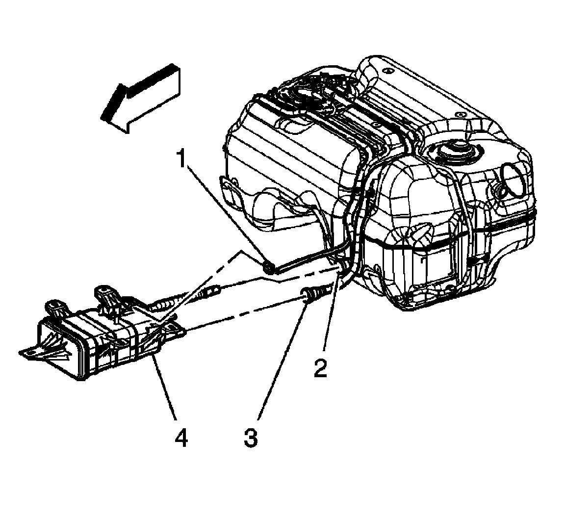 5. Connect the EVAP canister vent hose/pipe (3) to the EVAP canister. Refer to Plastic Collar Quick Connect Fitting Service.