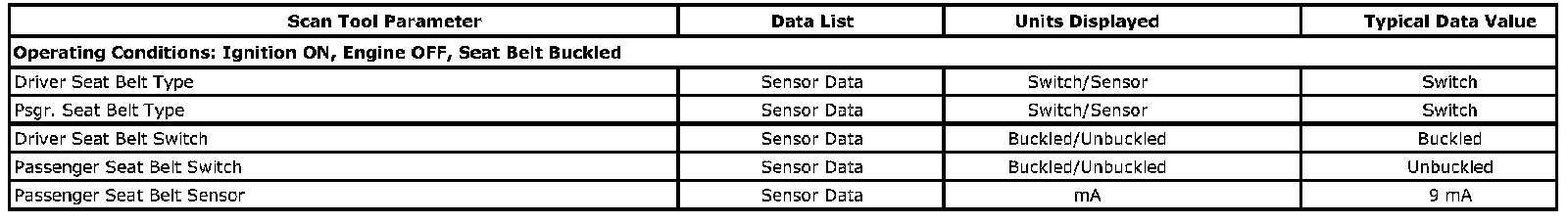 Scan Tool Data List - Seat Belts