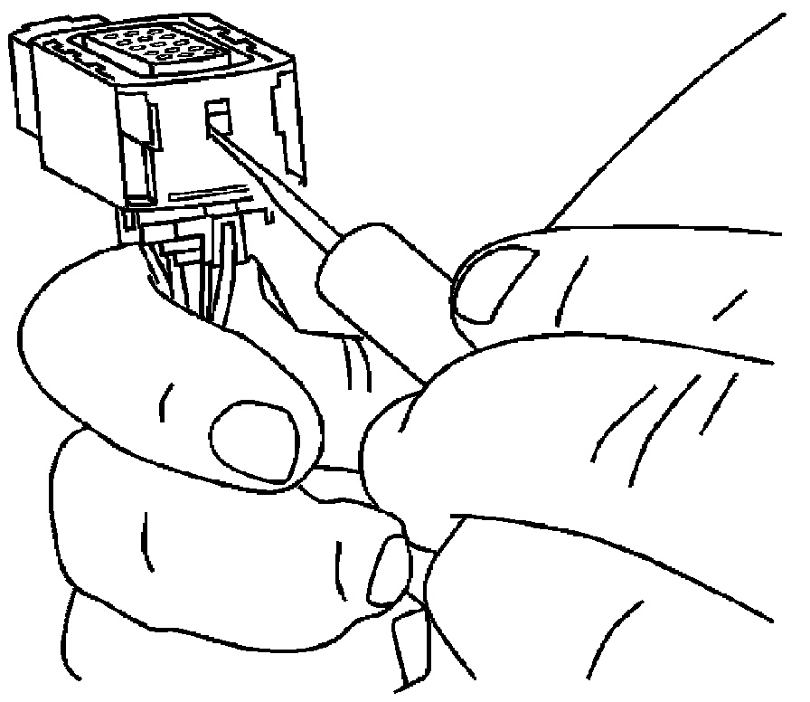 9. Insert the J 38125-12A (GM P/N 12094429) tool to release the terminals by inserting the tool into the terminal release cavity. See the release tool cross reference in the Reference Guide of the J-38125 to ensure that the correct release tool is used.