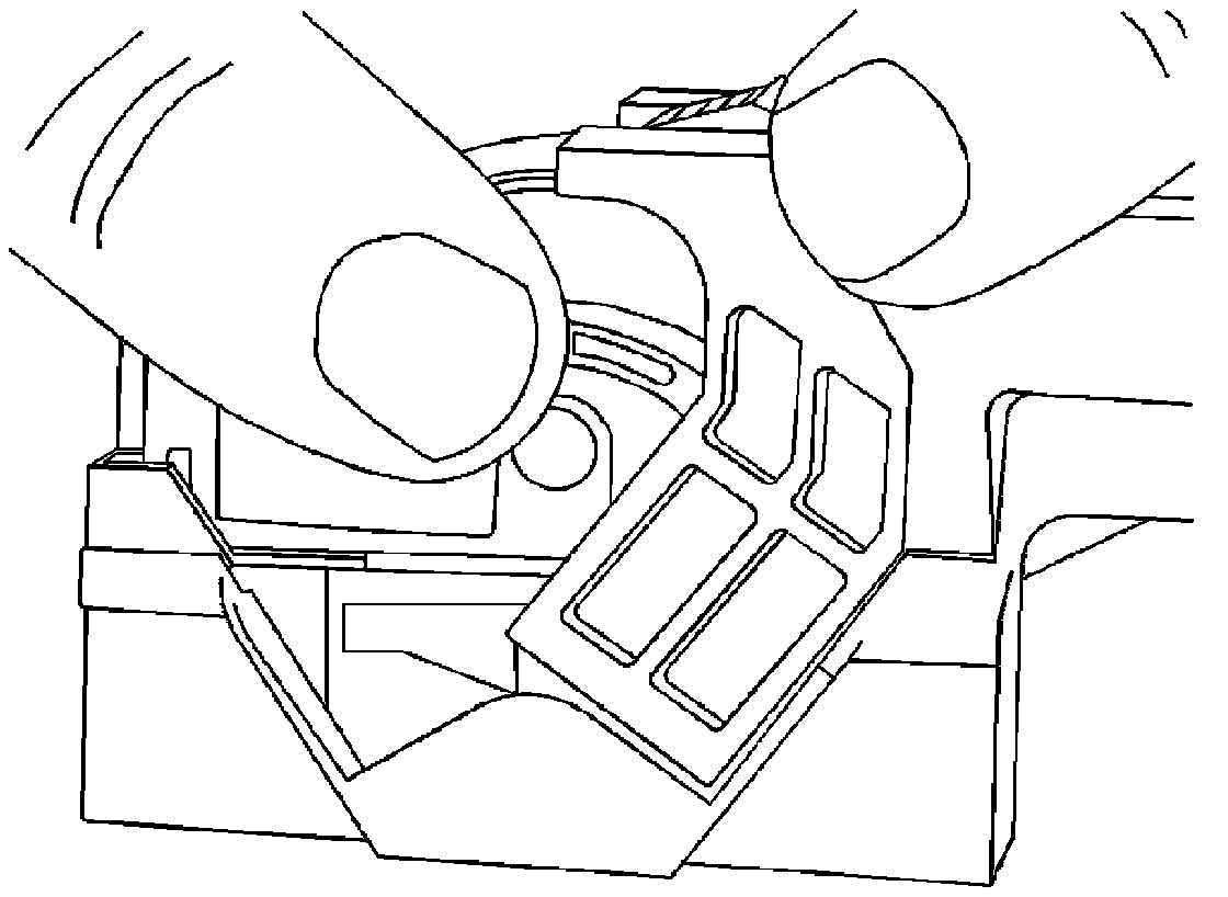 3. Locate the dress cover locking tabs at the front of the connector. Using a small flat-blade tool push down on one of the locking tabs and pull the cover up until the dress cover releases. Repeat this procedure for the other locking tab.