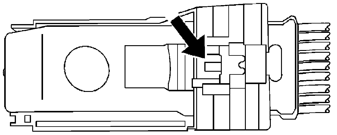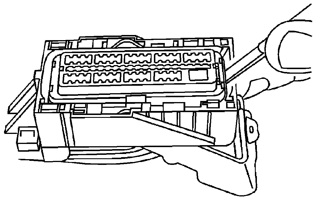 1. Locate the connector position assurance (CPA) on the top of the wire dress cover. Slide the CPA forward.
