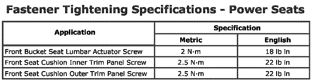 Fastener Tightening Specifications - Power Seats