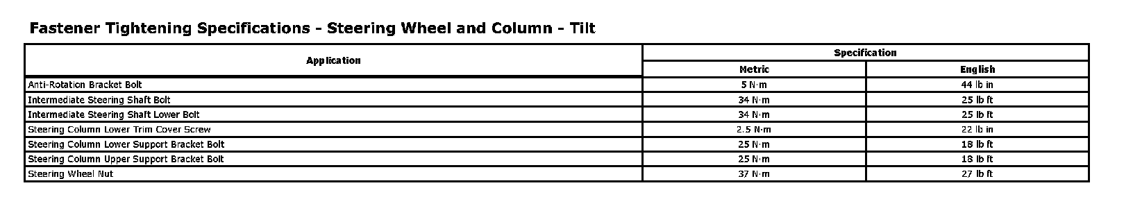 Fastener Tightening Specifications - Steering Wheel and Column - Tilt: