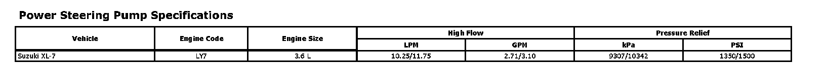 Power Steering Pump Specifications: