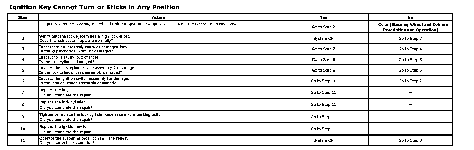 Ignition Key Cannot Turn or Sticks in Any Position: