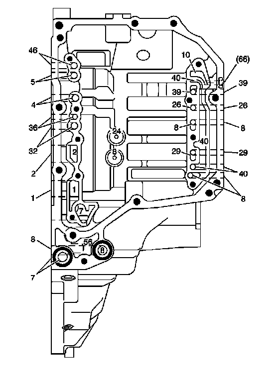 Transmission Case Assembly Fluid Passages (Transmission Control Valve Body Assembly Side)