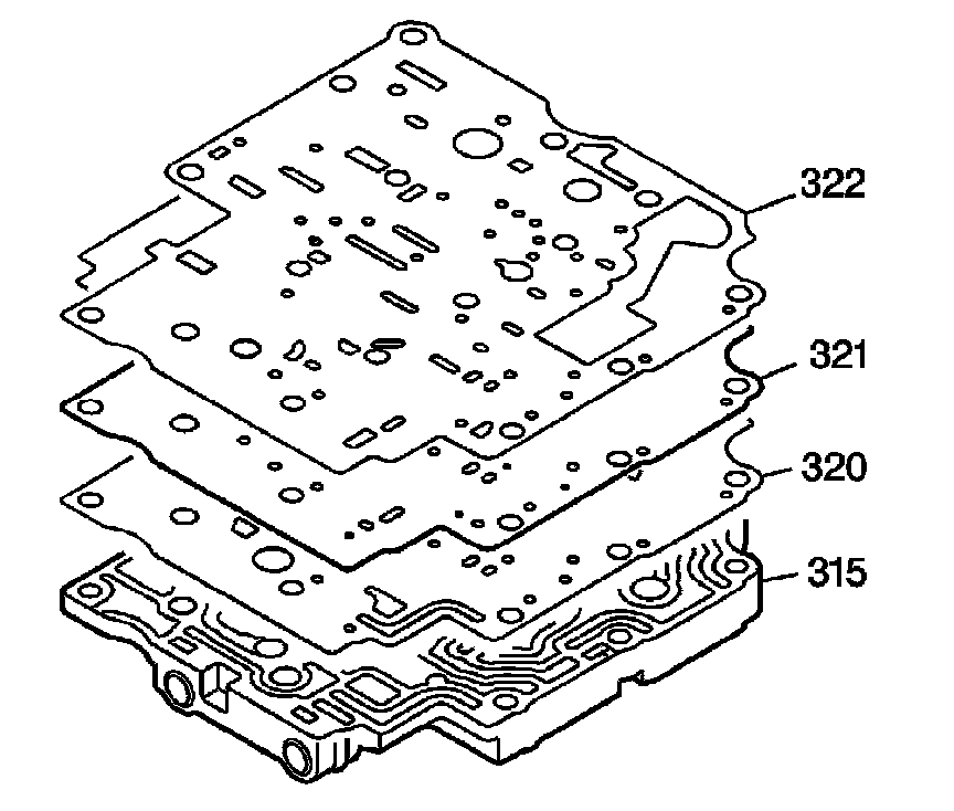 2. Remove the front control valve body spacer plate (321).