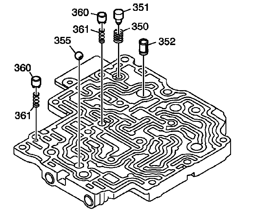 12. Remove the forward clutch (C1) control valve (354).