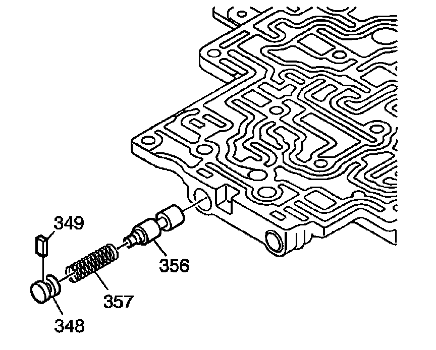 11. Remove the solenoid modulator valve bore plug (348).