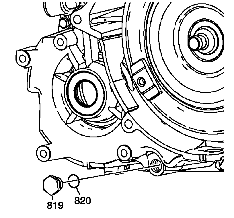 Drain Plug Installation1. Install a new gasket (820) on the drain plug (819).