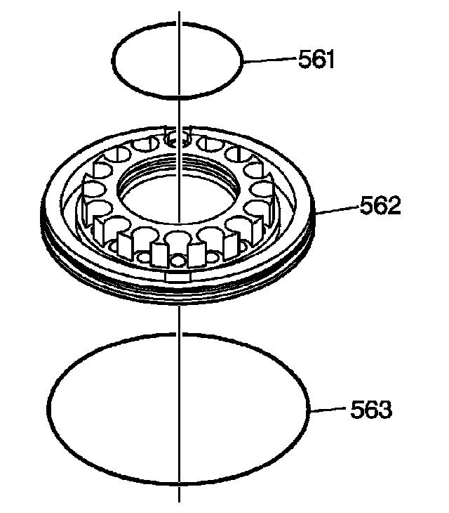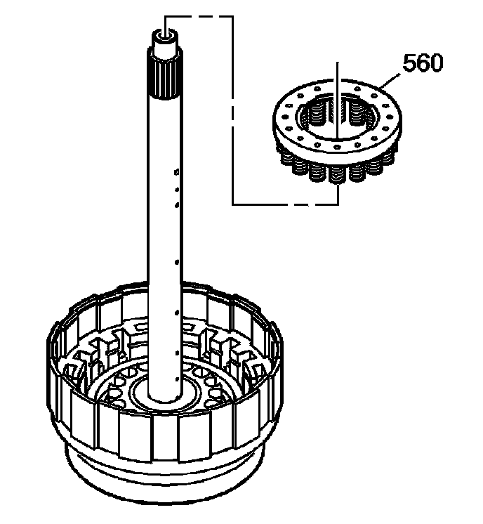 19. Install the direct clutch spring assembly (560) onto the direct clutch piston, indexing the springs into the holes in the direct clutch piston (562).