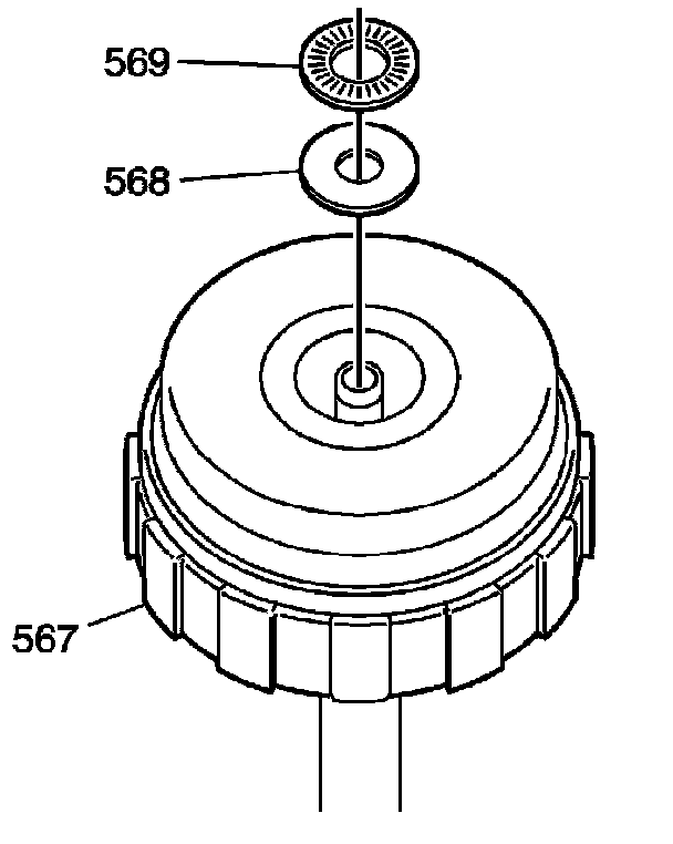27. Install the forward clutch backing plate retaining ring (550) into the groove in the forward and direct clutch housing assembly - with input shaft (567) using J 28585.