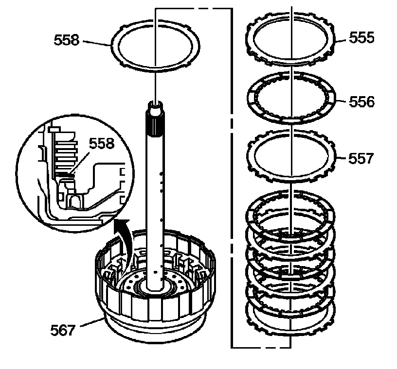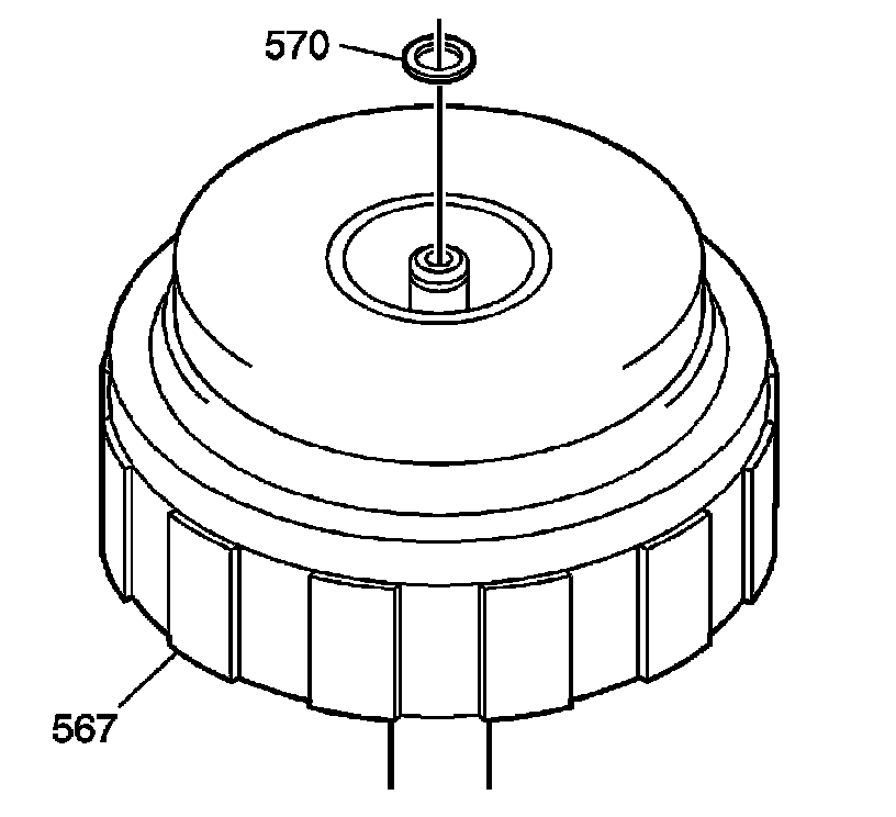 1. Remove the input shaft O-ring seal (570) from the forward and direct clutch housing assembly with input shaft (567).