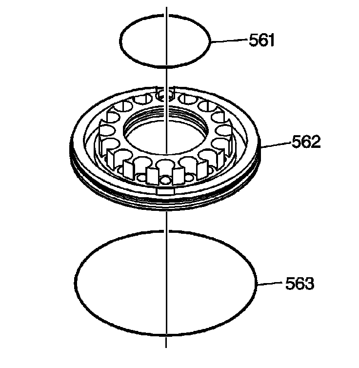 11. Remove the direct clutch piston inner seal (561) and the direct clutch piston outer seal (563) from the direct clutch piston (562).