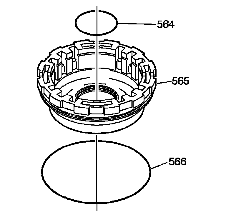 13. Remove the forward clutch piston inner seal (564) and the forward clutch piston outer seal (566) from the forward clutch piston (565).