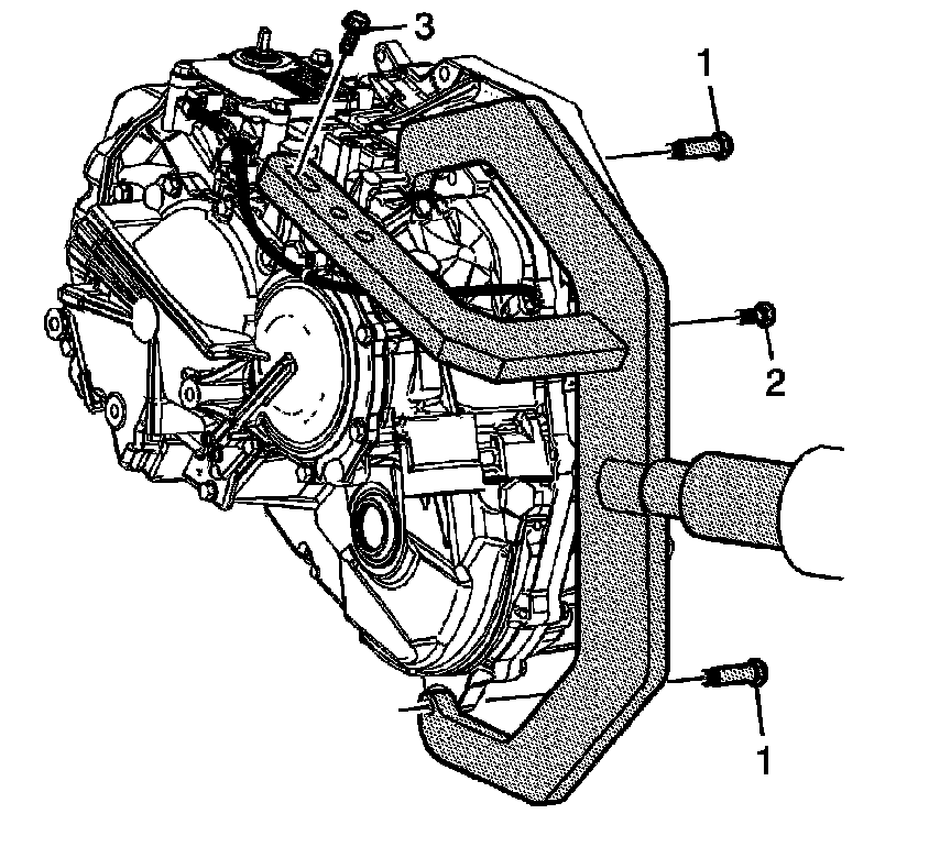 3. Install the body of the DT-48355 with the two long bolts (1) to the transaxle.