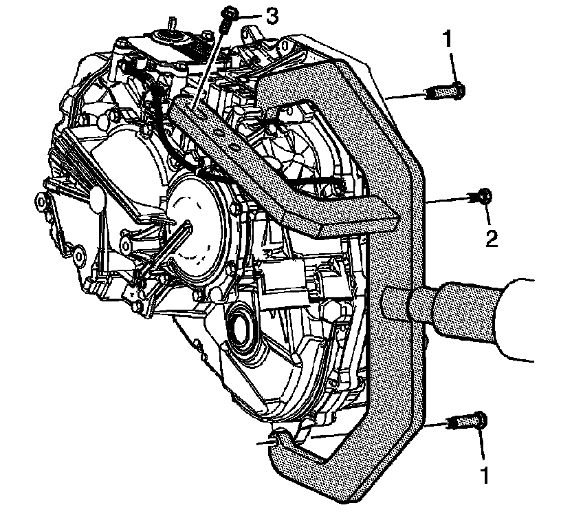 2. Remove the bracket bolt (3) from the transaxle.