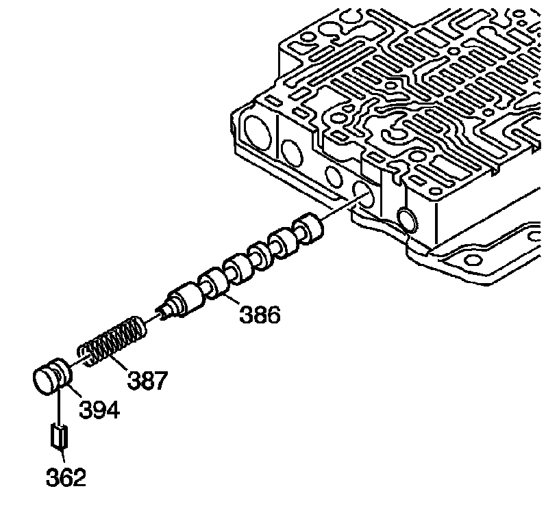 12. Install the 3rd gear band (B4) release valve spring (384).