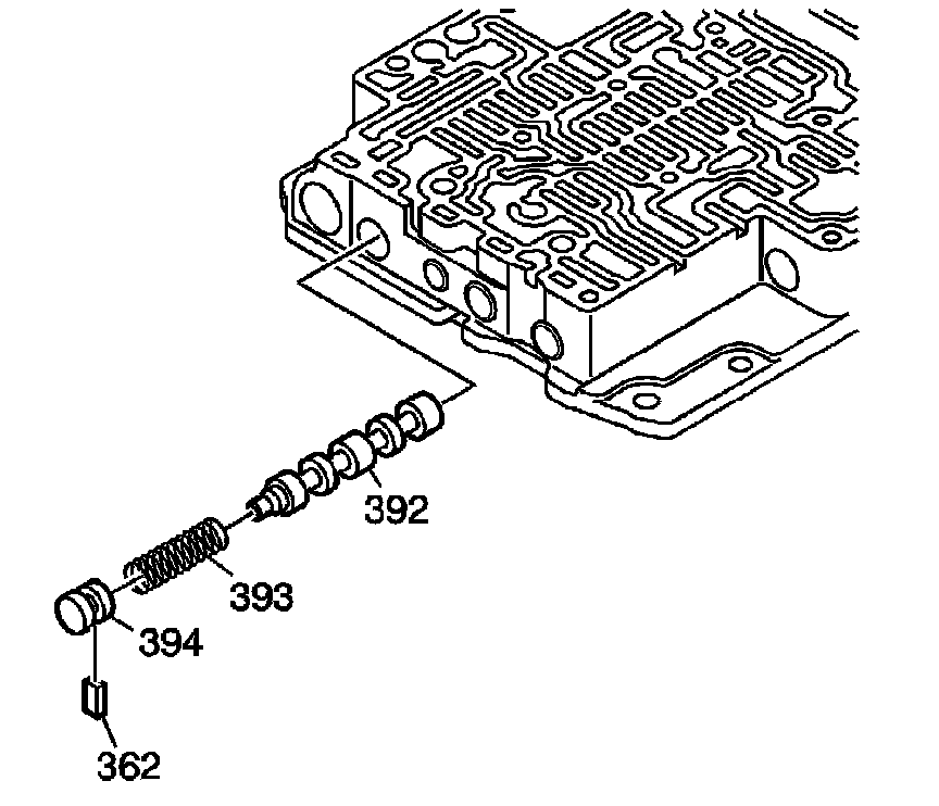 13. Remove the U2 shift valve spring (393).