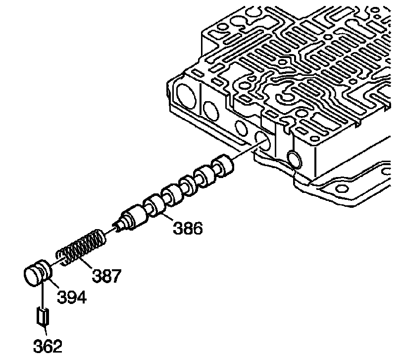 21. Remove the U1 shift valve spring (387).