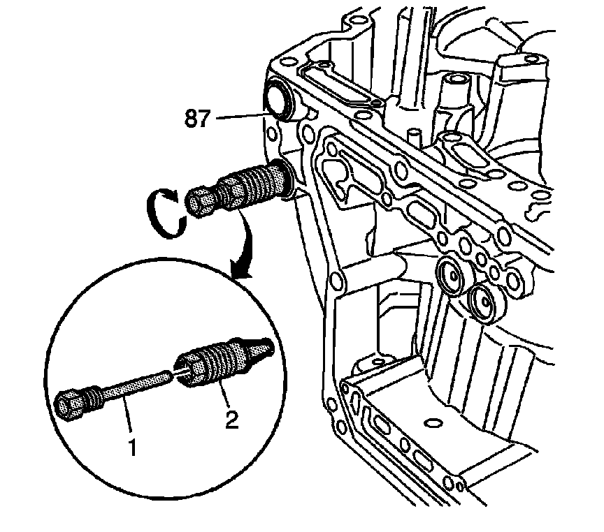 1. Insert the collet (2) of the J 45201 completely into the fluid cooler pipe fitting seal (87).