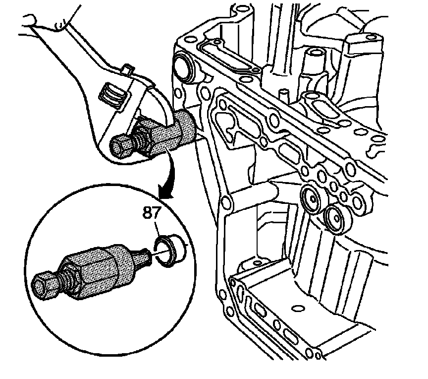 5. Using an adjustable wrench, turn the collar clockwise in order to remove the fluid cooler pipe fitting seal (87).