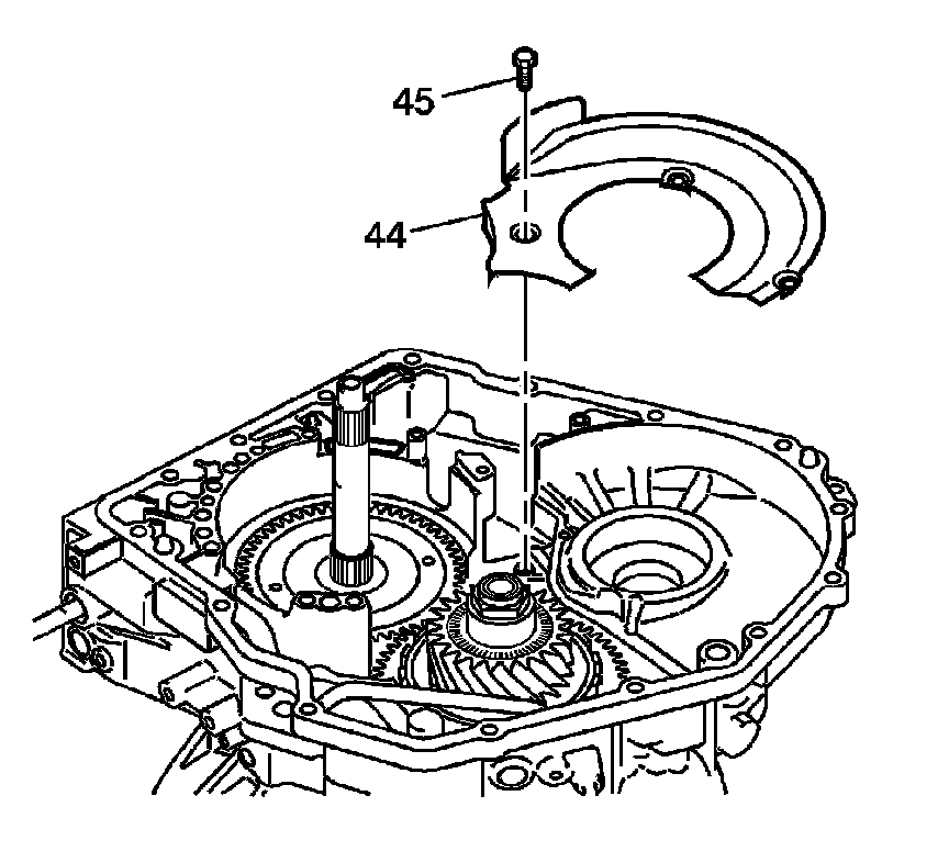 Transmission Fluid Baffle Removal1. Remove the 3 transmission fluid baffle bolts/screws (45).