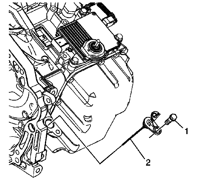 5. Remove the transaxle fluid indicator bolt (1) from the transaxle.