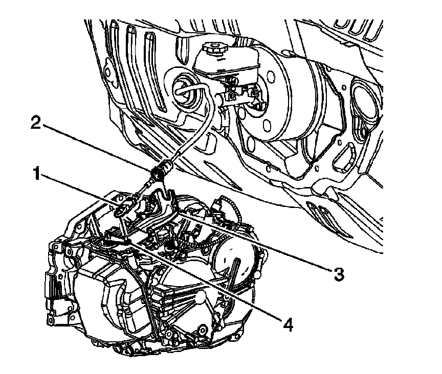 3. Using the J 36346, disconnect the shift control cable (1) from the transaxle range switch lever (4).