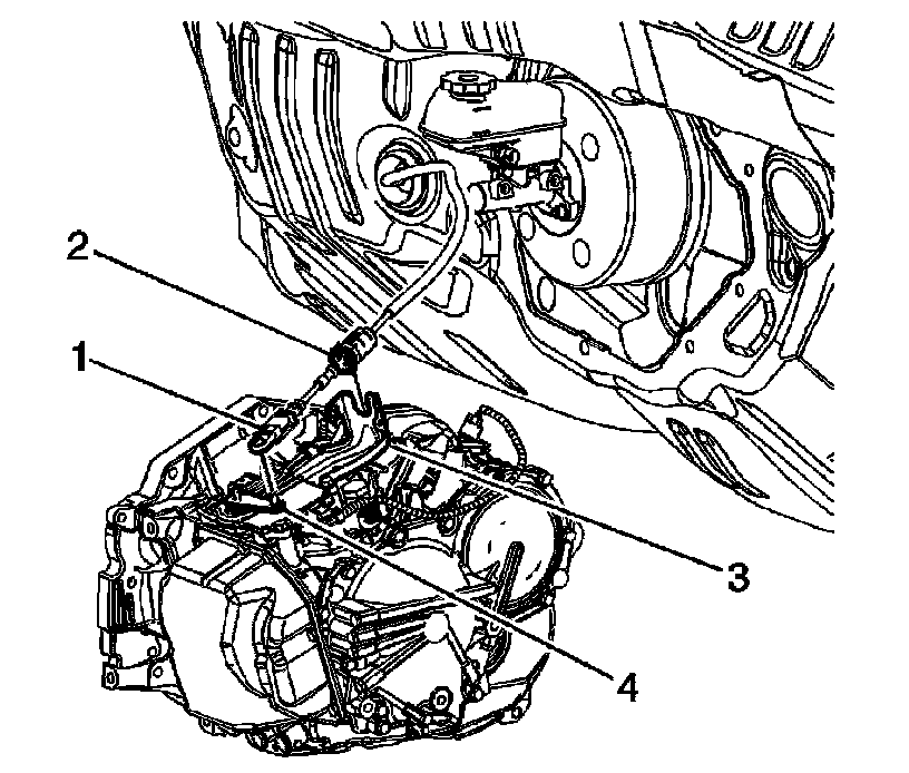 3. Connect the shift control cable (1) to the transaxle range switch lever (4).