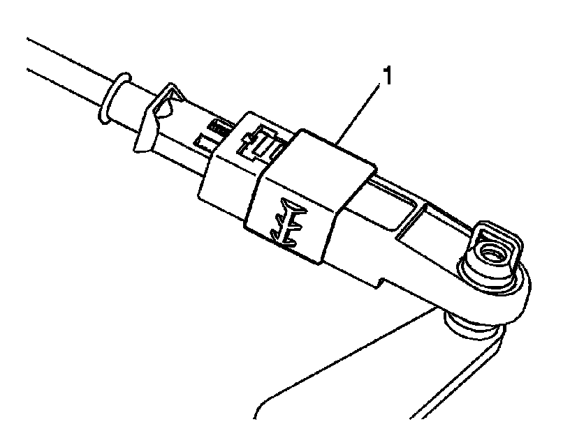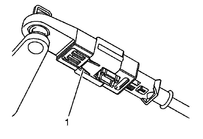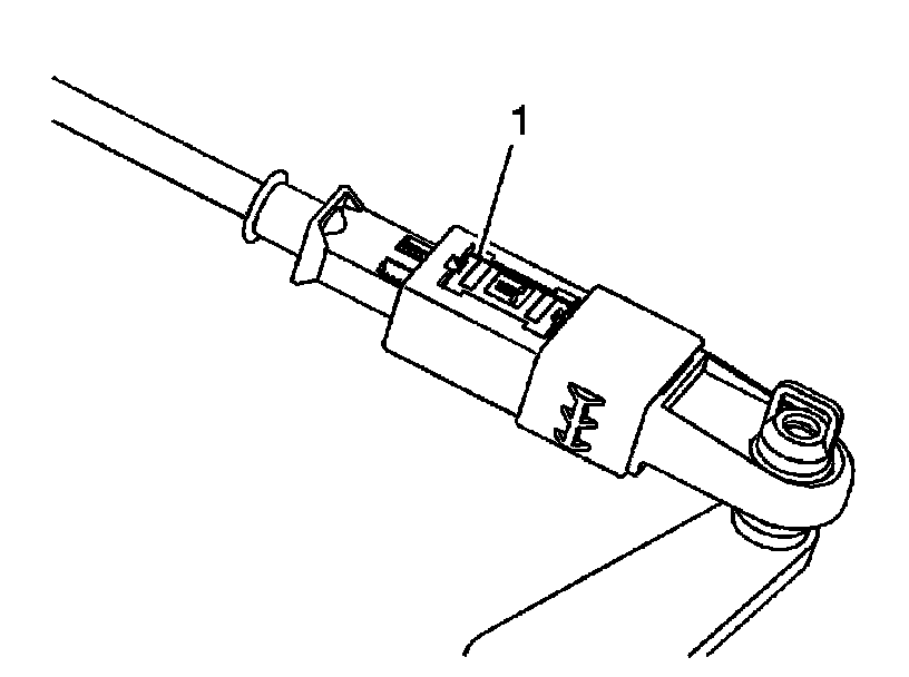 7. Depress the shift control cable adjustment lock (1) to lock the adjustment.