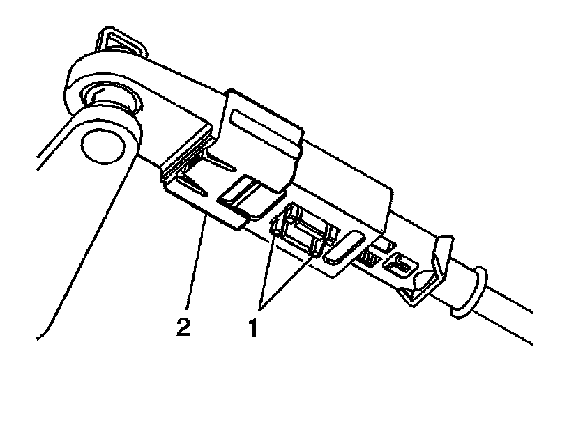 6. The shift control cable (1) and cable end (2) are free to slide to proper adjustment. Ensure the shift lever and transmission are both in the PARK position.