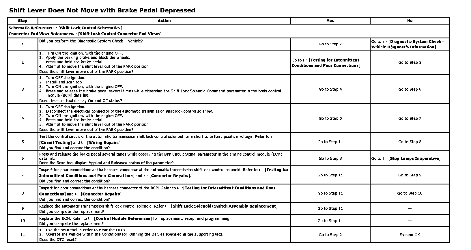 Shift Lever Does Not Move With Brake Pedal Depressed