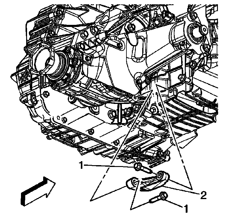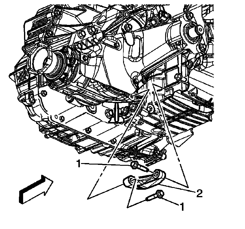 2. Remove the transaxle brace bolts (1).