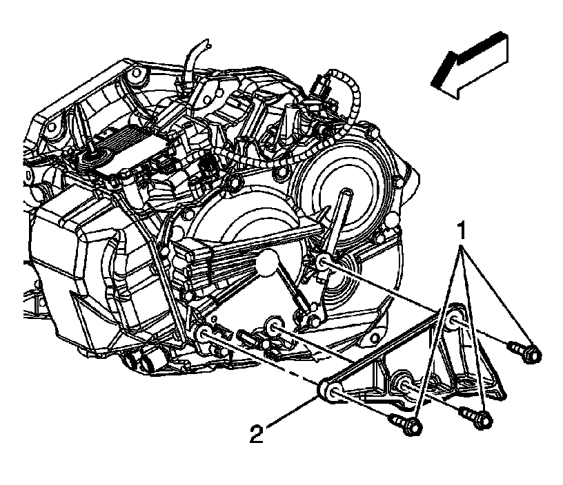 6. Remove the transaxle mount bracket (2).