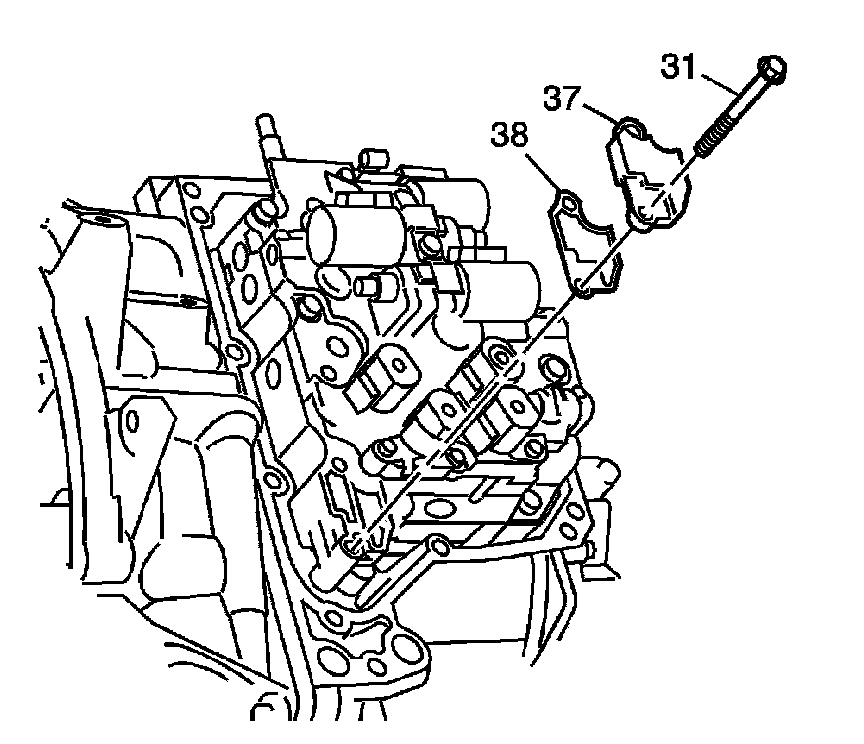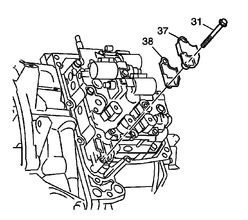 2. Remove the 2 control valve body bolts/screws (31), control valve body fluid passage cover (37) and gasket (38).