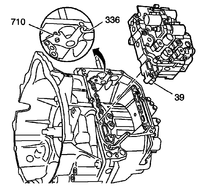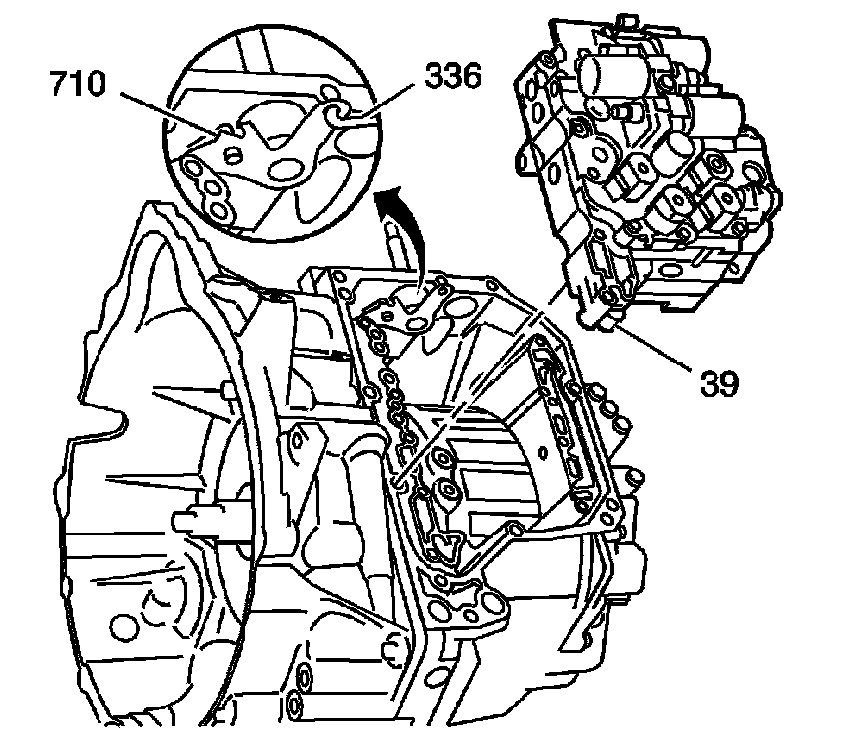 2. While holding the control valve body assembly (39), connect the manual valve link (336) to the manual shift detent lever assembly (710).
