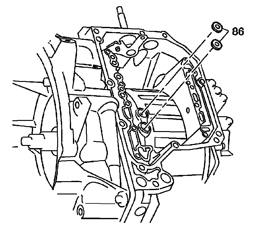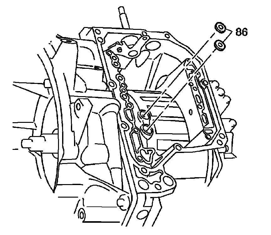1. Install 2 new transaxle case fluid passage seals (86) into the transaxle case fluid ports.