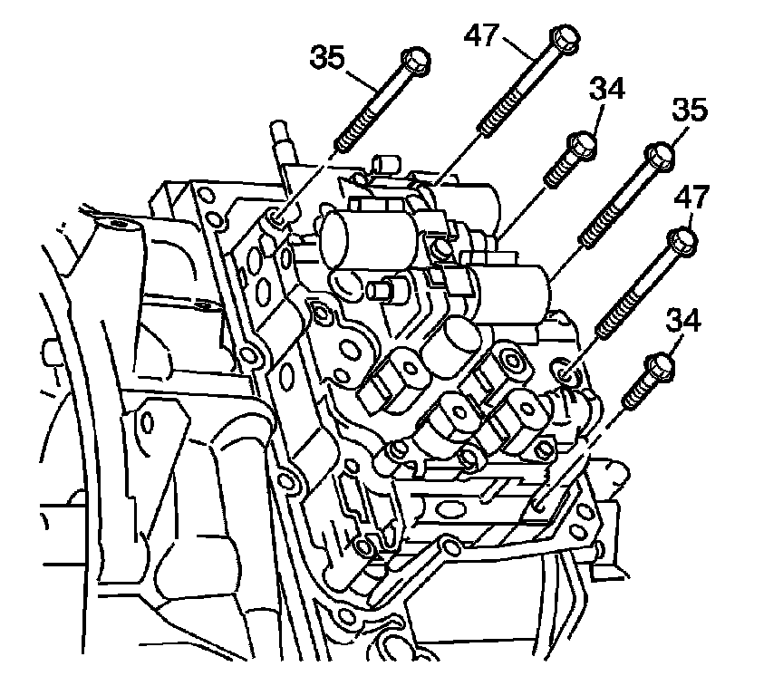 7. Install the 2 control valve body bolts (31).