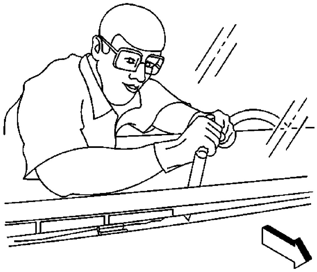 NOTE: Keep the cutting edge of the knife/tool against the window. Do this from inside the vehicle.