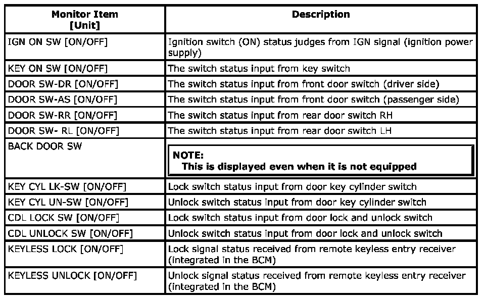 SDT Function (BCM - Battery Saver) - Data List:
