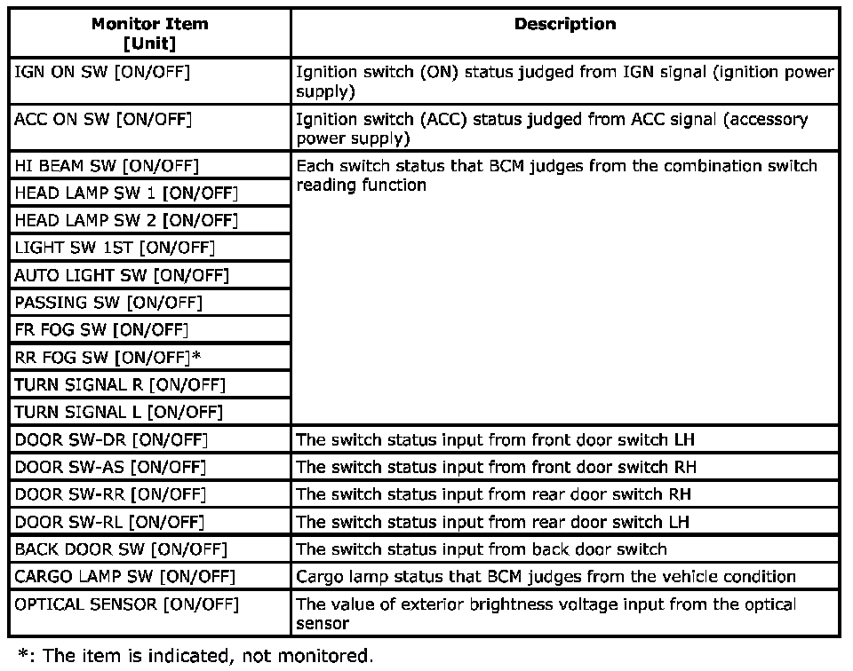 SDT Function (BCM - Head Lamp) - Data List: