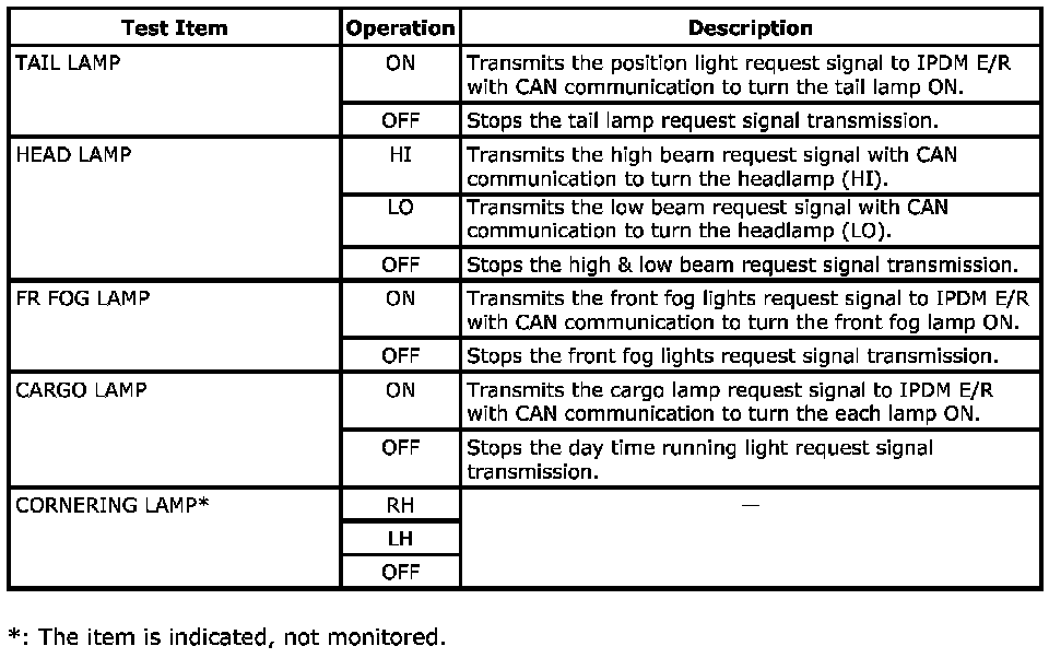 SDT Function (BCM - Head Lamp) - Active Test: