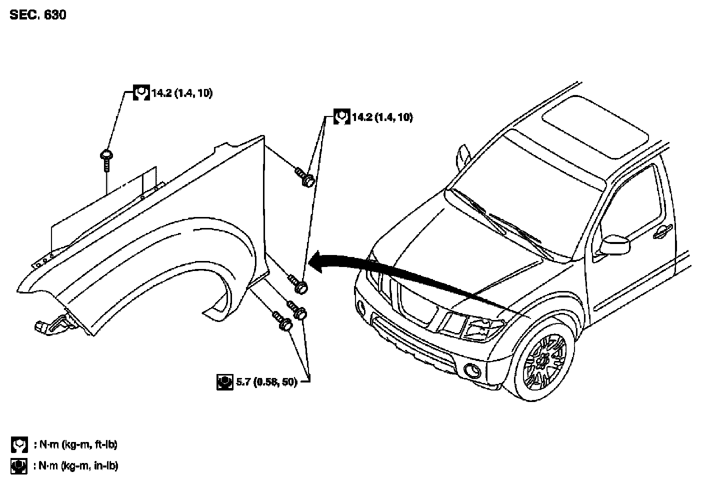 2. Remove front fender protector. Refer to [Front Fender Protector: Removal and Installation].