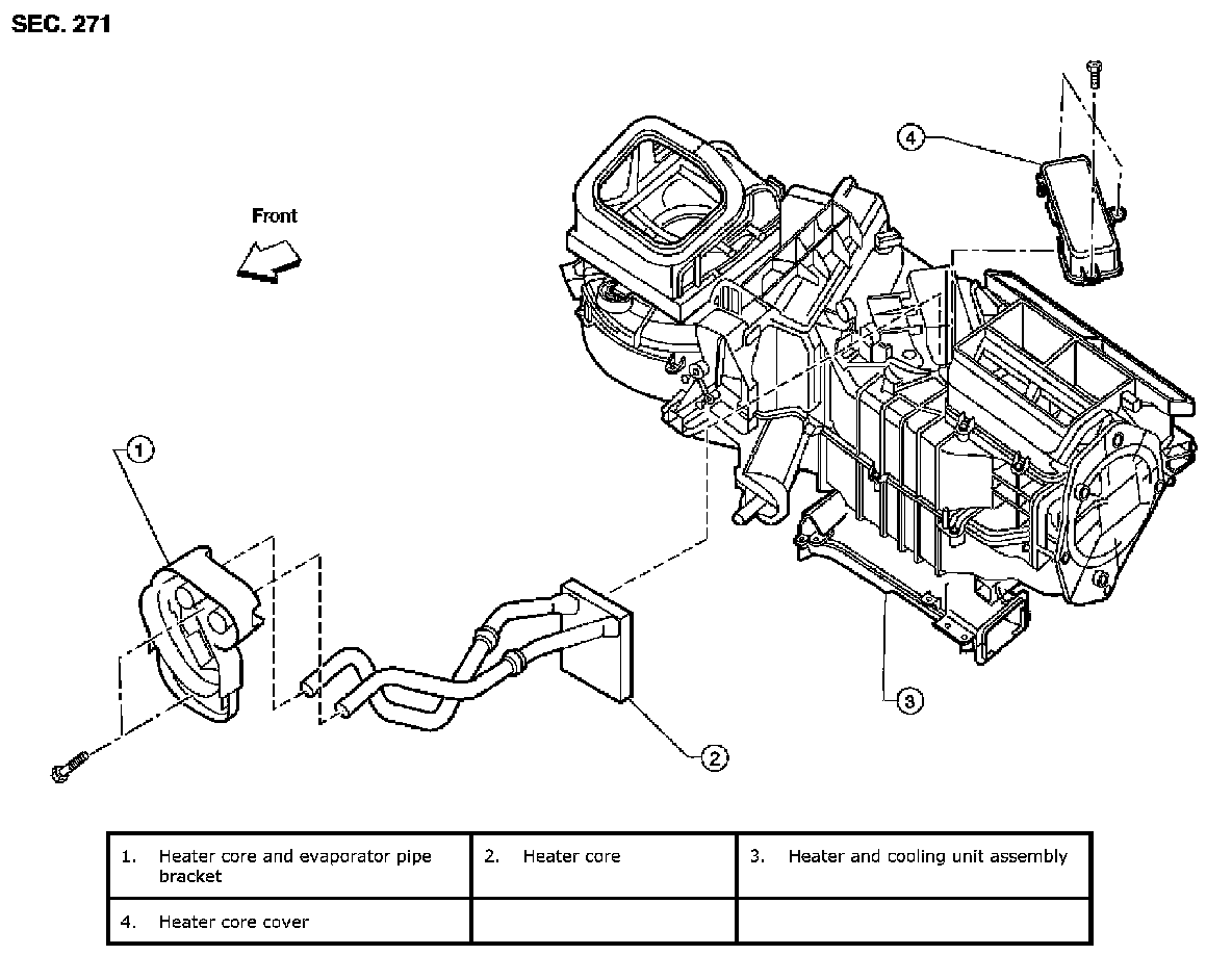 3. Remove the heater core and evaporator pipe bracket.