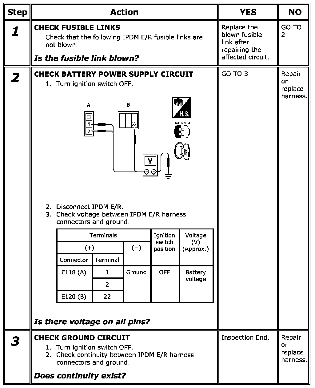 Power Supply and Ground Circuit Check [IPDM E/R]