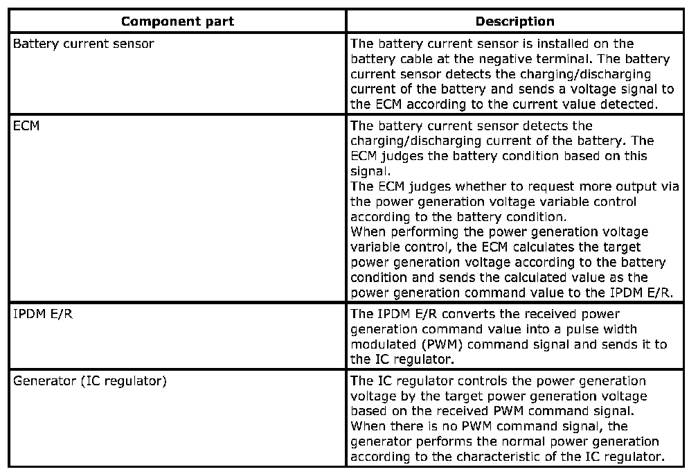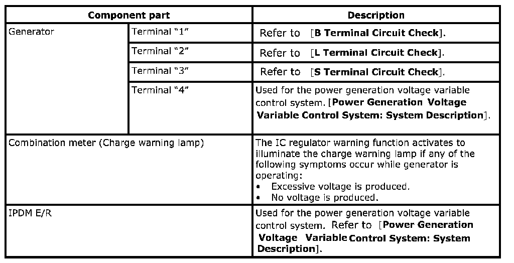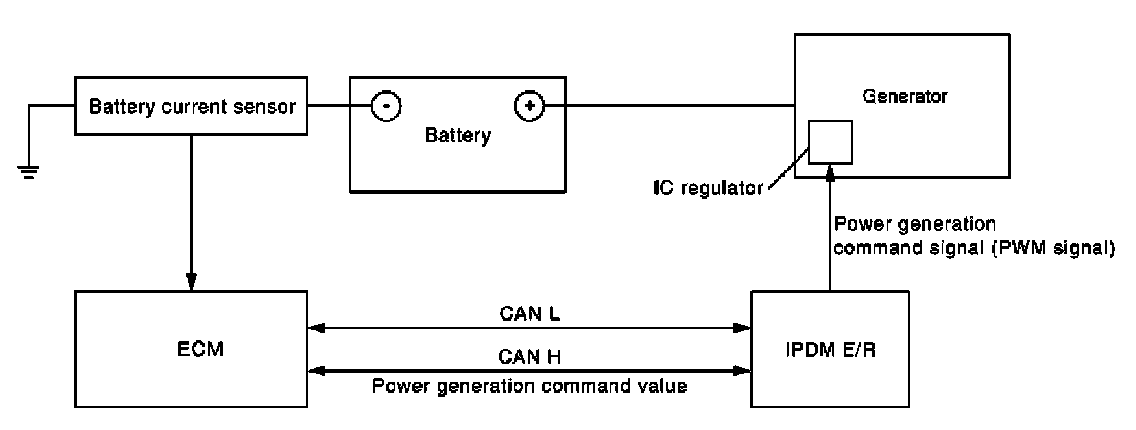 NOTE: When any malfunction is detected in the power generation variable voltage control system, power generation is performed according to the characteristic of the IC regulator in the generator.